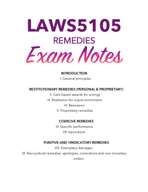 INTRODUCTION I. General principles RESTITUTIONARY REMEDIES (PERSONAL & PROPRIETARY) II. Gain-based awards for wrongs III. Restitution for unjust enrichment IV. Rescission V. Proprietary remedies COERCIVE REMEDIES VI. Specific performance VII. Injunctions PUNITIVE AND VINDICATORY REMEDIES VIII. Exemplary damages IX. Non-judicial remedies: apologies, corrections and non-monetary orders