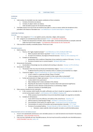 Detailed scaffolds for LAWS2015 Covers all topics Perfect for exams TOPICS: 1. Breach of confidence 2. Estoppel 3. Remedial equity 4. Nature and constitution of trusts 5. Operation of express trusts 6. Fiduciary obligations 7. Resulting trusts 8. Constructive trusts 9. Tracing 10. Charity