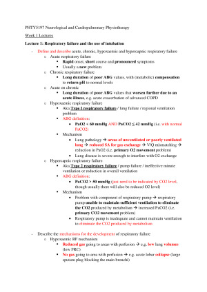 PHTY5197 Neurological and Cardiopulmonary Physiotherapy Revision Note