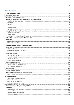 These are condensed Property law notes. Contain notes adequate for Hypos AND Essay Questions. I focus on making sure they are detailed enough to help you understand the issues and can contrast the legal complexities, but not so long that you cannot keep up with time requirements. I achieved a H1 with these notes. ABOUT ME: I have a H1 WAM and am employed by Melb Uni as a qualified law tutor: - I am employed by the University of Melbourne as a Law tutor in the Indigenous Tutorial Assistance Scheme (ITAS) - I was an STS Tutor in Constitutional Law
