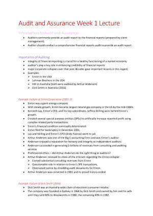 Introduction to audit and assurance Professional ethics Risk assessment Audit evidence Internal controls Testing controls Substantive procedures Substantive testing Completing and reporting on the audit Other assurance services