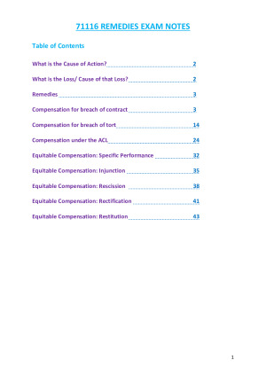 These extensive notes include information taken from seminars, lectures, various textbooks, authoritative cases, prescribed readings and further online research compiled into an easily read format for problem solving. They contain relevant theoretical content, supported by authoritative cases and examples to further your grasp of course content. I consistently achieved High Distinctions throughout the semester with these notes. These notes can aid you to achieve your desired mark, no topic is ignored.