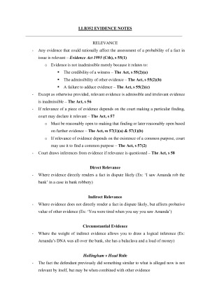 Comprehensive notes on all topics covered in the unit and checklists for questions for all topics. Includes: - Relevance - Presumptions - Proof - Competence, compellability and privilege - Witness examination - Similar fact evidence - Documentary evidence - Hearsay - Identification evidence - Opinion - Confessions and admissions - Improperly obtained evidence