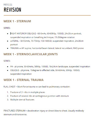 Positioning and pathology - Sternum - Extremities - fingers, hand, wrists, forearm, elbow, humerus, shoulder, clavicle, toes, feet, ankle, tib fib, knee - Mobile and trauma radiography Paediatric considerations Geriatric considerations