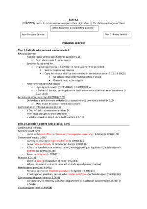 Concise LDR notes, suitable for JD or LLB. - Tables used throughout for clarity and simplicity - Where applicable, steps to guide answering questions - Sentences that can be adapted to the fact scenario TOPICS INCLUDED: Topic 1: Introduction and Overarching Guidance (page 3) Topic 2: Appropriate Dispute Resolution (page 6) Topic 3: Jurisdiction (page 8) Topic 4: Parties and Joinder (page 10) Topic 5: Commending Proceedings (page 15) Topic 6: Service (page 20) Topic 7: Appearance (page 24) Topic 8: Pleadings (page 25) Topic 9: Class Actions/Representative Proceedings (page 30) Topic 10: Interlocutory Applications (page 33) Topic 11: Gathering Evidence (page 37) Topic 12: Disposition Without Trial and Settlement (page 44) Topic 13: Costs (page 49)