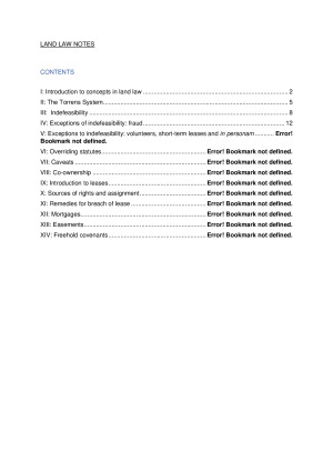 These land law notes cover ever topic in the subject with the exception of native title and are ideal for an exam. They are 74 pages long and are succinct summaries of each of the topics, with enough detail to wrap your head around the concepts but short enough to be used as a reference guide in an exam. My grade for the semester was 90 and I used only these notes in the exam.