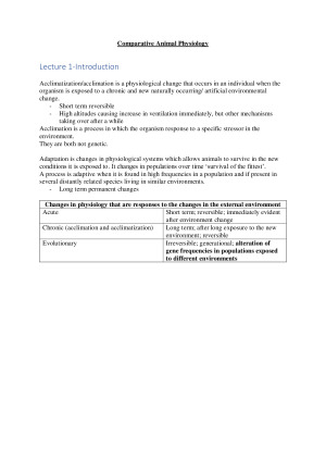 H1 summarised lecture notes for week 1-12 of ZOOL20006 completed in semester 2, 2020. Topics include homeostasis, metabolism, nutrition, thermoregulation, osmoregulation, cardiovascular systems, respiration, hormones, stress response, nervous system, sensory systems and reproduction.