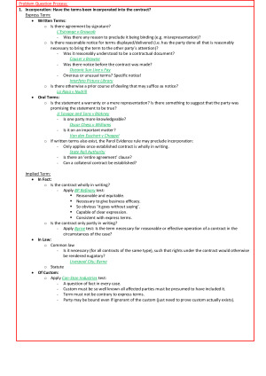 Contains notes and processes for all examinable topics: - Terms - Interpreting Terms - Performance - Variation - Termination of Contracts - Vitiating Factors - Contractual Remedies