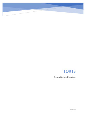 Well organized, easy to understand, authority rich notes. Following the table of contents you will be able to find everything you need for the Negligence based exam. With notes on how to structure your answers throughout. These notes cover: - Duty of Care * General Rules, Immunities, Established Categories, Novel Cases (General, Public Authorities, and Pure Omissions). - Breach of Duty * General, Setting the standard, Breaching the standard, Conclusion. - Causation * Preliminary, Factual Causation, Scope of Liability, Conclusion. - Defences * Complete Defences (limitation period, road authorities, no duty to warn of obvious risk, inherent risk, voluntary assumption of risk, joint illegal enterprise), Partial Defences (Criminal conduct, good Samaritans, food donors and distributors, contributory negligence) - Damages * Definitions, Non-economic loss, loss of earning capacity, lump sum compensation, Interest, management/investment costs, gratuitous services. and - an extra case notes section with detailed notes for individual cases with an easily searchable key-word column. Divided into the above subsections. I have used far more authorities than referenced in the lectures, taken from readings and my own research, your answers are sure to impress. I received a HD for all tort law assessments. It is too soon to know who was top of the class this year, but in the past I have received top for International Law, America and the World, and Modern Asia. My GPA is six point eight three. Authorities are underlined and in italics. Quotations in 'x' or "x".