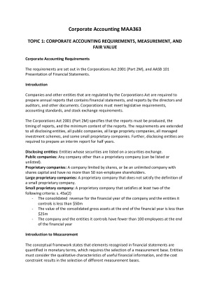 Topics: - Corporate Accounting Requirements, Measurement, and Fair Value - Intangible Assets - Accounting for Leases - Accounting for Income Taxes - Financial Instruments - Accounting for Investments and Business Combinations - Accounting for Investments in Subsidiaries - NCI - Accounting Policies and Other Disclosures - Financial Reporting Quality, Earnings Management, and Related Party Disclosures This includes all topics in MAA363. However, given the length of these notes, it is a good way to consolidate your understanding of the unit.