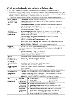 These are the notes I compiled for my study for the final exam and the quizzes. With these notes, I achieved 7 for this course. These notes are suitable for everyone, especially for people who don't have the time to go through every lecture and tutorial. These notes cover all the topics taught in the whole semester, as well as the practical/tutorial topics (which will be tested in the final exam and quizzes). I integrated the tutorial/practical content as seamlessly as possible into each relevant topic of the notes. Some tutorial topics are not covered in the lecture and are "extra content" being taught that could be tested. These topics are: Topic 1: Managing Operations: Business Strategy Topic 2: Managing Operations: Business Planning Topic 3: Managing Operations: Business Strategy (Prac 1) Topic 4 & 5: Managing Money Financial Reports & Ratios (Lecture & Prac 2 and 3) Topic 6: Managing Money: Budgets Topic 7: Managing Goods/Services: Marketing and Merchandising (Lecture & Prac 4) Topic 8: Managing Goods/Services: Customer Service Topic 9: Managing Goods & Services: Inventory Management (Lecture & Prac 5) Topic 10: Business Ethics Topic 11: Managing People: Leadership and Human Resources (Lecture & Prac 6) Topic 12: Managing People: Interprofessional Collaboration Topic 13: Managing People: Teamwork in Healthcare Topic 14: Managing People: Time & Staff & Performance Topic 15: Managing People: Case Conferencing Topic 16: Managing People: Leading Business (Prac 7) Topic 17: Digital Medicines and Pharmacy Practice Topic 18: Managing Operations: Introducing New Services Topic 19: Practical about "Setting up Pharmacy"