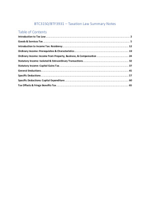 BTC3150/BTF3931 Taxation Law HD Summary Notes