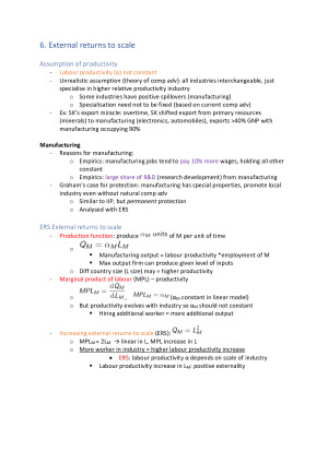 The DETAILED Globalisation and the World Economy (GWE) notes provide you a very comprehensive understanding of the subject and are carefully edited when I'm revising for my final exam. Topics covered: - Welfare and tariffs - Welfare and quotas - Infant industry and export taxes - International trade - Welfare of trade - External returns to scale - Heckscher-Ohlin Model - Marginal product of factors - HO model applications - Specific-factors model - Offshoring 💯The notes explain numerous concepts in great detail and include many step-by-step calculation examples that are extremely helpful to solve exam-type questions. 💯The notes are color-coded to help you better see the structure of important concepts. 💯Very easy to read and follow as they are clearly divided by lectures and up to date (after completing all the tutorials and lectures). Good luck with your studies!