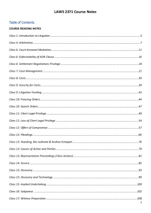 These LAWS2371 notes are a two-in-one - they provide BOTH detailed reading notes that can be used for class participation and step-by-step problem question scaffolds that can be used for the final exam. I received a 9/10 for class participation and an 83 for the course using these notes. These notes will save you hundreds of hours given how lengthy the readings are for the course.