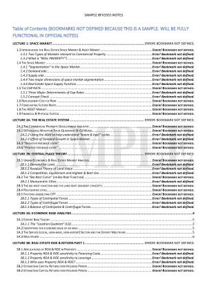 - Concise and structured, yet extensive notes for BFX3355 Property Investment - Headings and subheadings matches Lecture slides for easy reference - Table of contents for every chapter so you know where to find anything - Key points/keywords highlighted or bold AND colour-coded for easy learning - All formulas needed for the unit have been incorporated and highlighted/titled accordingly for easy reference - Refers to examples and exhibits in the lecture slides Compiled from: - Lectures (discussions) - Lecture Slides - Tutorial Notes - Further Research Topics included: 1. Space Market 2A. The Real Estate System 2B. Central Place Theory 3A. Economic Base Analysis 3B. Real Estate Risk & Return Part 1 4. Real Estate Risk & Return Part 2 5. Leverage and Capital Structure 6. Introducing Property Taxation and the Impact on Valuation 7A. Real Estate Valuation (DCF & NPV) 7B. Property Valuation Models 8. Indirect Property 9. Evaluation of Leases 10. Fundamentals of Residential Property 11. Residential Property Valuation Models Hope it will help you get through this difficult difficult lemon difficult unit haha, no cap though, these notes saved me in the exam :D
