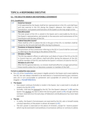 Comprehensive final exam notes for USyd Public Law (LAWS1021/5007). Includes key case summaries, scaffolds and extracts of relevant legislation. Topics include: - The Executive Branch and Responsible Government; - Reserve Powers; - Executive Accountability to Parliament; - Prerogative Powers (including Nationhood); - Executive Capacities (Contracting and Spending); - Oversight of the Executive (including Freedom of Information, Ombudsmen and ICAC); - Delegated Legislation; - Constitutional Safeguards for Judicial Power.