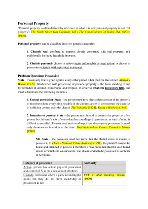 Comprehensive exam answer structures and relevant authority. Topics include: 1. Answer structure; 2. Insurance contracts; 3. Sale of Goods; 4. Personal property; 5. Personal property securities; and 6. Competition and consumer law
