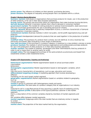 Affordable HD concise and comprehensive notes that covers key terms of every topic, and will sufficiently prepare you for the closed-book exam! 1. What is marketing? 2. The marketing environment 3. Marketing research 4. Buyer behaviour 5. Segmentation, Targeting, and Positioning 6. Product decisions and Branding 7. Pricing decisions 8. Promotion decisions 9. Place decisions 10. Services; Extended marketing mix 11. Social marketing; Digital marketing 12. Marketing management; Review