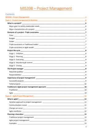 HD - Project Management (MIS398) - COMPREHENSIVE NOTES of ALL TOPICS