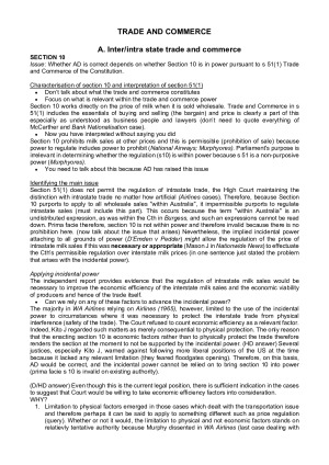 Based on Professor Peter Gerangelos' lectures and the 'ideal' answers he gave for each topic. His tips and tricks are all inputted into this scaffold, including quotes of sentences he believes need to be in a HD answer. Topics: 1. TRADE AND COMMERCECORPORATIONS POWER 2. FREEDOM OF INTERSTATE TRADE 3. TAXATION 4. GRANTS 5. THE DEFENCE POWER 6. IMPLIED FREEDOM OF POLITICAL OF COMMUNICATION/INTERGOVERNMENTAL IMMUNITIES 7. INTERGOVERNMENTAL IMMUNITIES