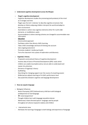 Covers all topics, reflects integration of lecture slides and notes. Distinction received for this UOS (81= D). Divided into the following sections: - Mind & Body - Cognition - Development & Lifespan - Health Psychology - Learning - Intelligence - Personality - Social psychology - Obedience & Conformity - Memory