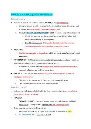 Distinction Notes - 'Indigenous People of Australia and The Law'