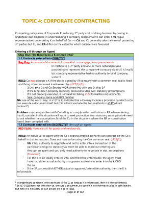Well written Company Law Notes This Huge Notes would make you a very happy person when doing company law Otherwise, you would be studying in pain Provide clear guidelines and steps to answer and learn each topic Topic 2 Incorporation and its effects Topic 3 Constitution Topic 4 Corporate contracting Topic 5 Corporate Financing Topic 6 Members and Directors Topic 7 Directors Duties Topic 8 Members Remedies Topic 9 Corporate Mortality