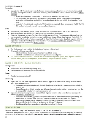 Comprehensive notes detailing Public Law and Statutory Interpretation topics. First half of the notes detail content. Second half of the notes detail content AND provide steps to tackle statutory interpretation in the exam. Topics include: 1. Introduction and foundational concepts to Public Law 2. Relationship and structures 3. Origins and evolution of Australian Public Law 4. Parliament and Legislative power 5. The Executive 6. The Courts and judicial power 7/8. Public law in practice: Executive detention 9. Our Statutory Universe 10. Text, Context and Purpose 11. Presumptions and Protection Rights 12. Principles of Statutory Interpretation in practice