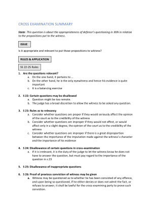 I managed to score a 92 HD Grade in the final written exam using this set of notes I have created on my own. In 2021 exam, spotting issues and IRAC method is a key part of exam strategy, therefore I have deliberately set out my notes in an IRAC structure, which can be easily referred to in exam under time constraint. I have made thorough notes on each topic by using lecture and seminar notes and by summarising the required reading. Topics covered are: 1. Cross examination 2. Hearsay and expert evidence 4. Police powers 5. Discretion to exclude evidence 6. Propensity and similar fact evidence 8. Shield