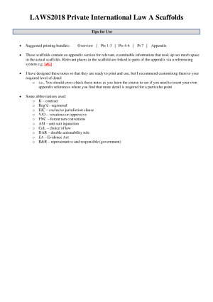 Cut right to the chase with these standalone scaffolds that are ready for use in the LAWS2018/5017 Final Exam. ➼ These scaffolds helped me achieve an 87 in the Final Exam. ➼ Perfect for use whether from the beginning of semester (recommended!), or towards the end ➼ Hyperlinked Table of Contents/Overview section. ➼ Hyperlinked Appendix section to ensure scaffolds are ACTUALLY concise, whilst being comprehensive. ➼ Scaffolds refined post-exam. I was also on-call for both problem question seminars. ➼ Taught by Dr. Stacie Strong in S2 2021 My scaffolds cover the following topics: • Personal jurisdiction: at common law; service in AU, service in NZ • Personal jurisdiction: service outside ANZ • Discretionary non-exercise of jurisdiction: foreign jurisdiction clauses • Discretionary non-exercise of jurisdiction: forum non conveniens • Anti-suit injunctions • Choice of law: terminology, structure & approach • Choice of law: substance and procedure • Foreign Law: Introduction & Ascertainment • Foreign Law: Exclusion of Foreign Law • Choice of Law in Torts • Choice of Law in Contract • Mandatory Rules and Forum Statutes • Recognition and Enforcement of Foreign Judgments (All weeks except Arbitration which was non-examinable).