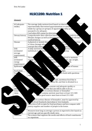 Complete summary of all the lectures week-by-week, clobbering each learning objective for HLSC1200. Includes pictures, diagrams, examples and definitions.