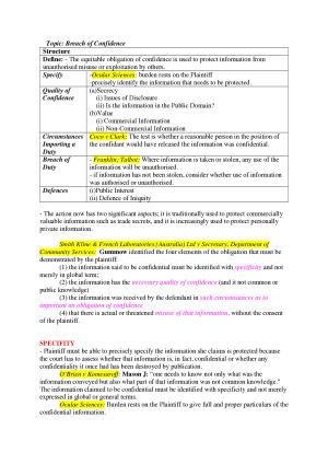 - Condensed HD Exam Notes containing tips for the structure of your answers! Topics include; - Fiduciary Relationships - Third-Party Liability - Breach of Confidence - Defences - Remedies; Proprietary & Personal Remedies