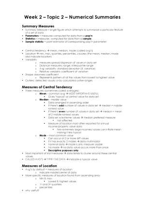 These MIS171 notes encompass all you need for Business Analytics, with enough detail to allow you to understand the whole unit without any unnecessary text to waste your time. Includes formulas and step-by-step descriptions and diagrams to help you solve problems.