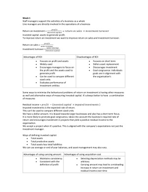 Covers all tutorials, lectures and readings. Topics included: -Financial performance measures -Non-financial performance measures -Sustainability -Budgeting systems -Standard costing & variance analysis -Managing and reporting performance -Managing quality -Managing customers -Managing suppliers -Strategic cost management