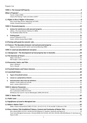 These notes contain everything you need to learn and (most importantly!) UNDERSTAND the entire property course from scratch. They are the ideal go-to-guide for everything property law. These notes contain comprehensive summaries of EVERY assigned reading and most additional readings for the property law course, along with comprehensive notes on all lectures. I heard that property law was conceptually very difficult and so I spend a disproportionate amount of my time on Property Law meaning the using them will free up time for other subjects where such comprehensive notes are unavailable (or you do not have the time to engage on such a level due to other commitments). I believe they are your pathway to quick thinking on the exam so that you can use your time efficiently in order to get the best possible result by canvassing the best arguments for both sides and drawing a logical; conclusion based on the relative strength of those arguments. Since my goal was to really learn and understand the course, especially the conceptual elements that are a little difficult at first to get your head around, I present a lot of information diagrammatically so that it makes more sense and is therefore more memorable. THESE NOTES WILL NOT DISAPPOINT; THE AMOUNT OF TIME THEY WILL SAVE YOU IS INVALUABLE.