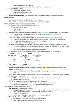 Visual Neuroscience H1 comprehensive notes w/ labelled diagrams and highlights