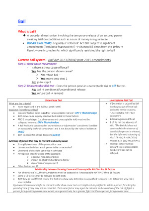 These notes go over week 1-13 lectures and seminars. Very in-depth notes for exams. Topics Covered: - Bail - Assault - Homicide - Sexual assault - Domestic violence