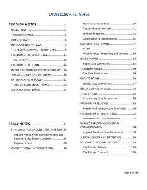 My FEDCON notes that I took for Trimester 2 2021. I achieved a HD with a mark of 88. includes ALL CASES and easy to follow for final exam. Also formatted to be excellent for CP purposes! Topics covered: - External Affairs Power - Races Power - Trade and Commerce Power - Corporations Power - Taxation Power - Express Guarantees - Trial by Jury - The Federal Compact - Judicial Detention - Aliens Power