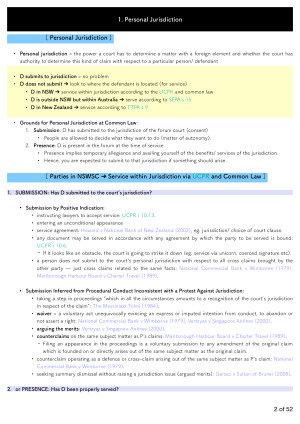 This set of notes helped me achieve a Distinction for the final exam. It is based on the structure and 'ideal' answers provided by the lecturer, and covers everything you need for the final exam. Main Topics Include (all sub-topics are covered): 1. Personal Jurisdiction 2. Choice of Law 3. Recognition and Enforcement of Foreign Judgements