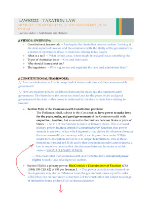LAWS3222 Taxation Law - Revision & Exam Study Guide