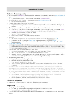 DETAILED, EXTENSIVE AND WELL STRUCTURED CORPORATIONS LAW NOTES RECEIVING A HD MARK. Note: Topic 1 and Topic 10 were examinable in Mid-semester Exam Topics 11-20 were examinable in Final Exam. Part I: Full Course Notes containing complete case summaries and key legal principles (sample pages 1-5) highlighted and colour coded. These notes have been made through compiling a number of notes from HD students in conjunction with the assigned textbook readings, optional readings and seminar work. Topics include: Topic 1. Civil penalties regime Topic 2. Types of companies; company formation; business structures Topic 3. Fundraising 1: debt and equity Topic 4. Fundraising 2: Ch 6D Topic 5. Corporate insolvency Topic 6. Corporate personality Topic 7. Piercing the corporate veil Topic 8. The corporate constitution Topic 9/10. Decision-making organs; company meetings Topic 11. Corporate liability in tort Topic 12. Corporate liability in contract Topic 13. Corporate criminal liability Topic 14a. Overview of directors’ duties Topic 14b. Duty to act in good faith and for proper purposes Topic 15/16. Fiduciary obligations; statutory regulation of conflicts Topic 17/18. Duty of care, skill and diligence; BJR; ratification Topic 19/20. Members’ remedies Part II: Problem Question Scaffolds (sample pages 6-11) Includes a comprehensive scaffold of each topic which is essential for answering problem questions during the final exam as it ensures that all essential elements of the question are addressed. This scaffold helped me summarised each extensive topic and understand how the individual sub-topics within each topic are linked together. I believe this set of scaffolds is all you need to excel in the final exam.