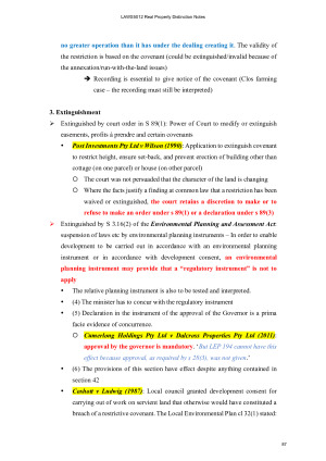 This is a comprehensive class note with detailed explanation to the cases and clear mindmaps and scaffolds at the end of the important modules which will help you easily locate the authority in the exam. The key points and the take-aways are all highlighted and marked in red, making the notes colourful and readable. This notes includes the following modules: 1. Introduction and history 2. Indefeasibility 3. Exceptions to indefeasibility 4. Exceptions to indefeasibility and assurance fund 5. Priorities 6. Co-ownership 7. Lease 8. Easement 9. Covenants 10. Mortgage