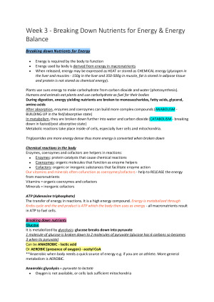 Study notes for DTN201 Nutrition Fundamentals These are my notes taken from lectures and synch sessions. Includes: - Revision notes from DTN 101 as a refresher - Dietary Requirements and NRV - Nutritional Assessment - Breaking Down Nutrients for Energy & Energy Balance - Body Composition - Diet Composition - Carbohydrates - Proteins - Fats - Lipids - Water, Electrolytes, Alcohol - Major Minerals - Trace Minerals - Water Vitamins - Fat Soluble Vitamins