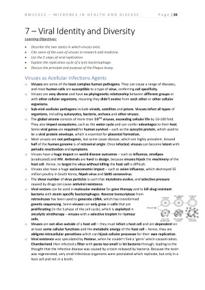 Comprehensive notes covering weeks 1-12, summarising all key content from lectures in easy-to-understand language. Used by many students for HD marks. Lectures included: 1 – Microbial Diversity and Host-Pathogen Interactions (i) 2 & 3 – Microbial Diversity and Host-Pathogen Interactions (ii & iii) 4 – Mechanisms of Bacterial Pathogenesis (i) 5 – Mechanisms of Bacterial Pathogenesis – Invasion and Evasion (ii) 6 – Mechanisms of Bacterial Pathogenesis – Toxins (iii) 7 – Viral Identity and Diversity 8 – Structure and Classification of Viruses 9 – Outcomes of Viral Infections 10 & 11 – Fungi and Fungal Infections 12 – Innate Immunity 13 – Antigen Presentation and the Major Histocompatibility Complex 14 – Adaptive Immunity 15 – Immunity to Infection 16 – Immunopathology 17 – Clinical Microbiology and Immunology – Diagnosis of Infectious Diseases (i) 18 – Clinical Microbiology and Immunology – Diagnosis of Infectious Diseases (ii) 19 – Infectious Disease Epidemiology (i) 20 – Infectious Disease Epidemiology (ii) 21 – Vaccines (i) 22 – Vaccines (ii) 23 - Antimicrobial Agents and Resistance 24 – Phage Therapy 25 & 26 – Molecular Drug Targets and Drug Design (i & ii) 27 – Parasitic Diseases (i) – Toxoplasmosis 28 – Parasitic Diseases (ii) – African Trypanosomiasis 29 – Parasitic Diseases (iii) – American Trypanosomiasis & Leishmaniasis 30 – Clostridial Infections (i) 31 – Clostridial Infections (ii) – Clostridium perfringens 32 – Clostridial Infections (iii) – Clostridium difficile 33 – Rabies (i) 34 – Rabies (ii)