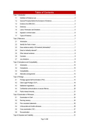 My notes are a comprehensive combination of both lecture content and practicals, Include the following topics: - Relevance - Competence & Compellability - Privilege - Examination of Witnesses - Credibility & Character - Right to Silence - Tendency & Coincidence - Hearsay - Admissions - Illegally Obtained Evidence - Opinion