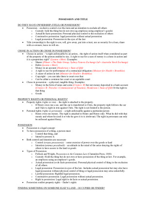 Introduction to Property and Commercial Law Exam Notes Includes cases Topics: Overview Possession and Title Sale of Goods Act Australian Consumer Law Finance and Personal Property Bailment Personal Property Securities Act 2009 (Cth)