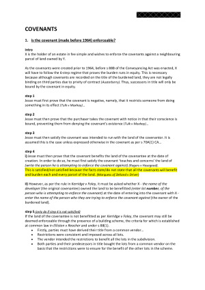 These GO-TO Real Property Exam Scaffolds outline, step-by-step, how to approach a problem question for the following topics: • Covenants • Easements • Mortgages • Co-Ownership • Leases These notes summarise key legal tests and case law and will ensure you are covering the most critical content in the exam.
