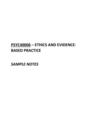 Comprehensive H1 (90) PSYC40006 Ethics and Evidence-Based Practice Notes
