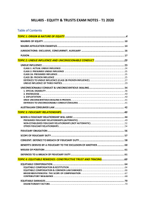 MLL405 Equity & Trusts Exam Notes (Fully Contented)