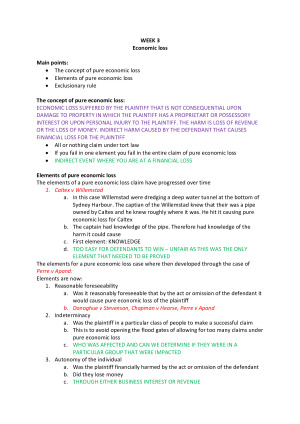 - Psychiatric illness - Economic loss - Negligent misstatement - Defective structures - Professional negligence - Negligent omissions - Vicarious liability - Nuisance - Defamation
